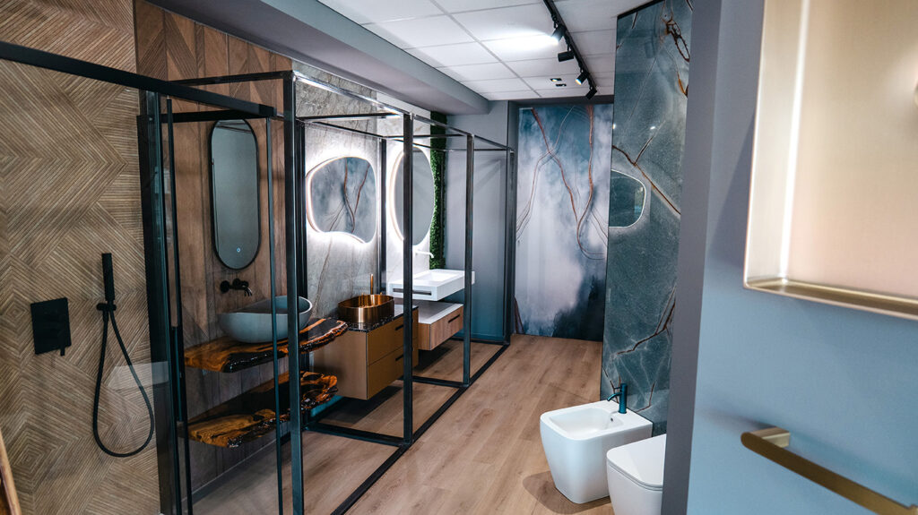 Nel nostro showroom il progetto diventa realtà grazie a materiali, texture e abbinamenti concreti. Qui il cliente può vedere e toccare pavimenti, rivestimenti, sanitari e rubinetteria, valutando ogni combinazione. È lo spazio dove tecnica ed estetica si incontrano, trasformando le idee in soluzioni reali e armoniose.